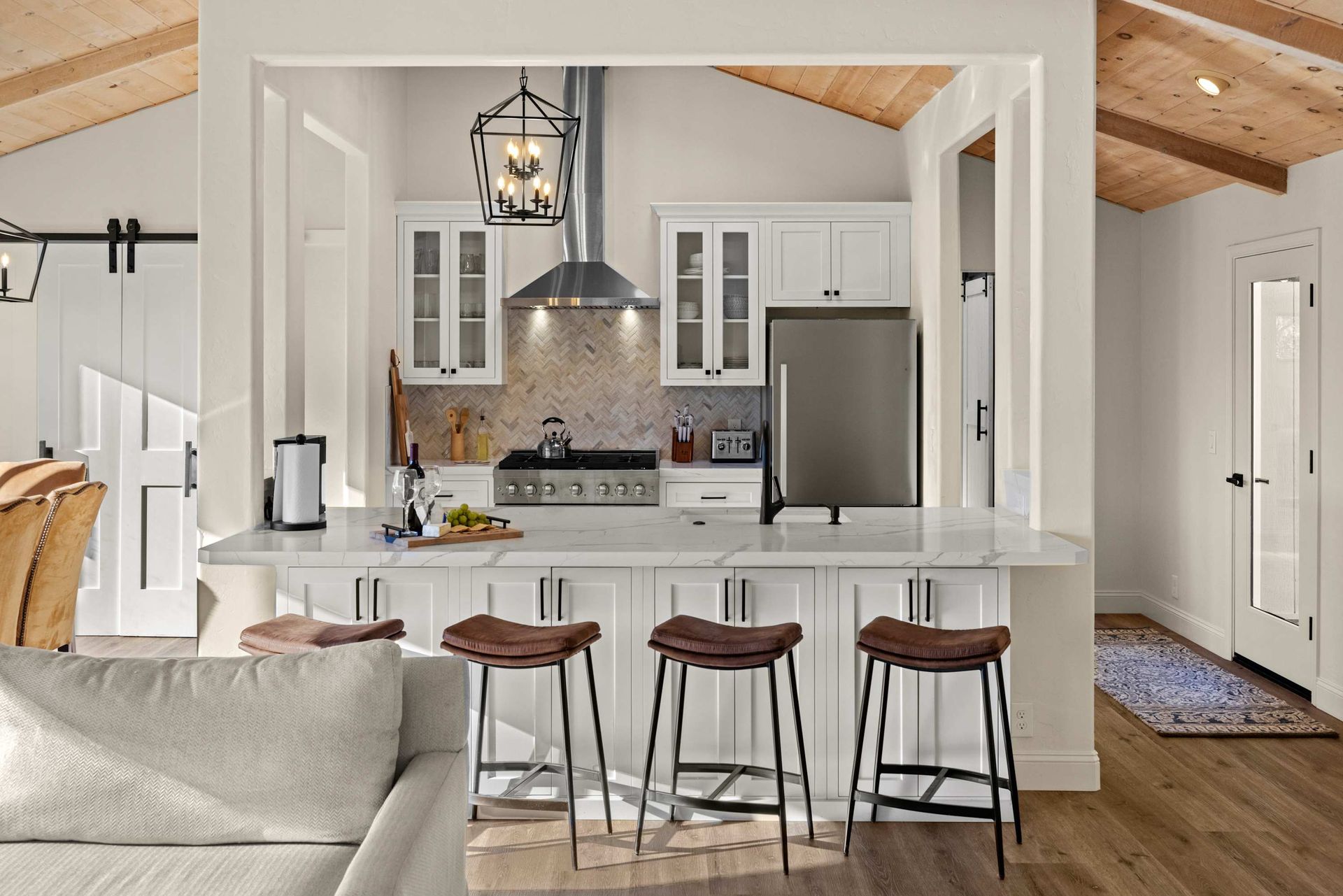 Step inside Valley Vista Serenita and experience an open floor plan that immediately impresses with vaulted ceilings, skylights, and expansive floor-to-ceiling windows that bathe the home in natural light. The living spaces flow effortlessly into one another, creating a warm, inviting atmosphere ideal for both peaceful retreats and lively gatherings.
