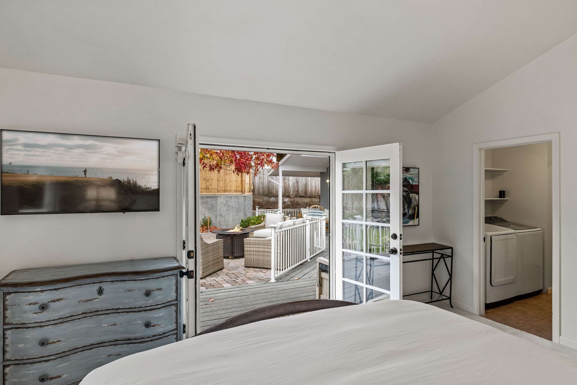 The open-concept kitchen is a chef's dream, equipped with top-of-the-line appliances and complemented by a spacious dining area. The adjoining living room, featuring a gas fireplace, offers an inviting atmosphere for memorable moments with family and friends. Outside, the expansive patio is an entertainer's paradise, complete with an outdoor gas firepit that sets the stage for unforgettable evenings under the stars. Whether enjoying the warmth of the fire or soaking in the natural beauty surrounding you, Villa Azul seamlessly blends indoor and outdoor living for an experience unlike any other.